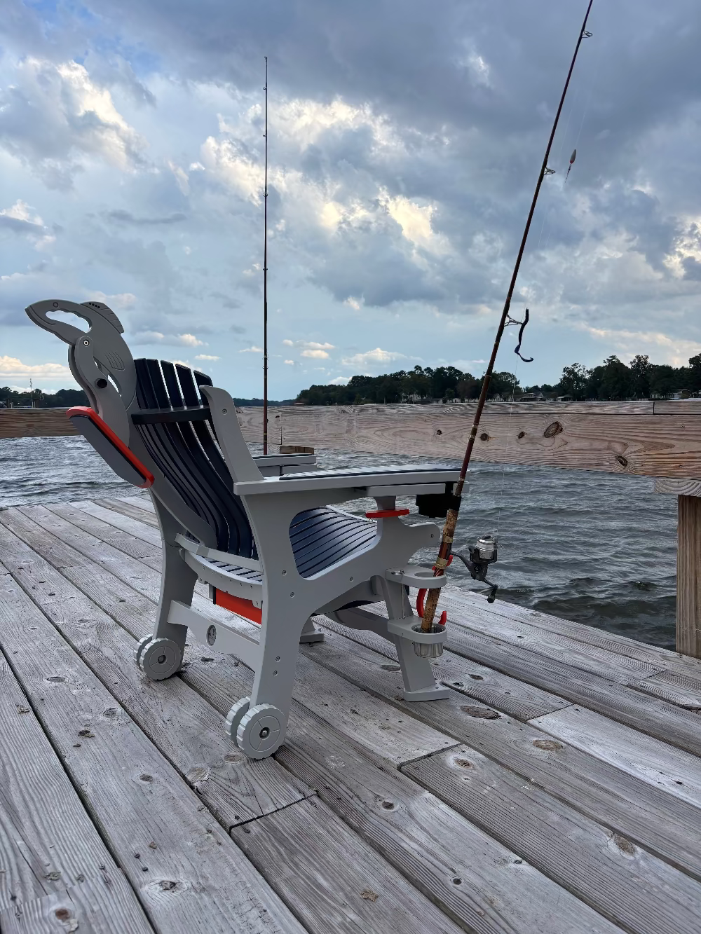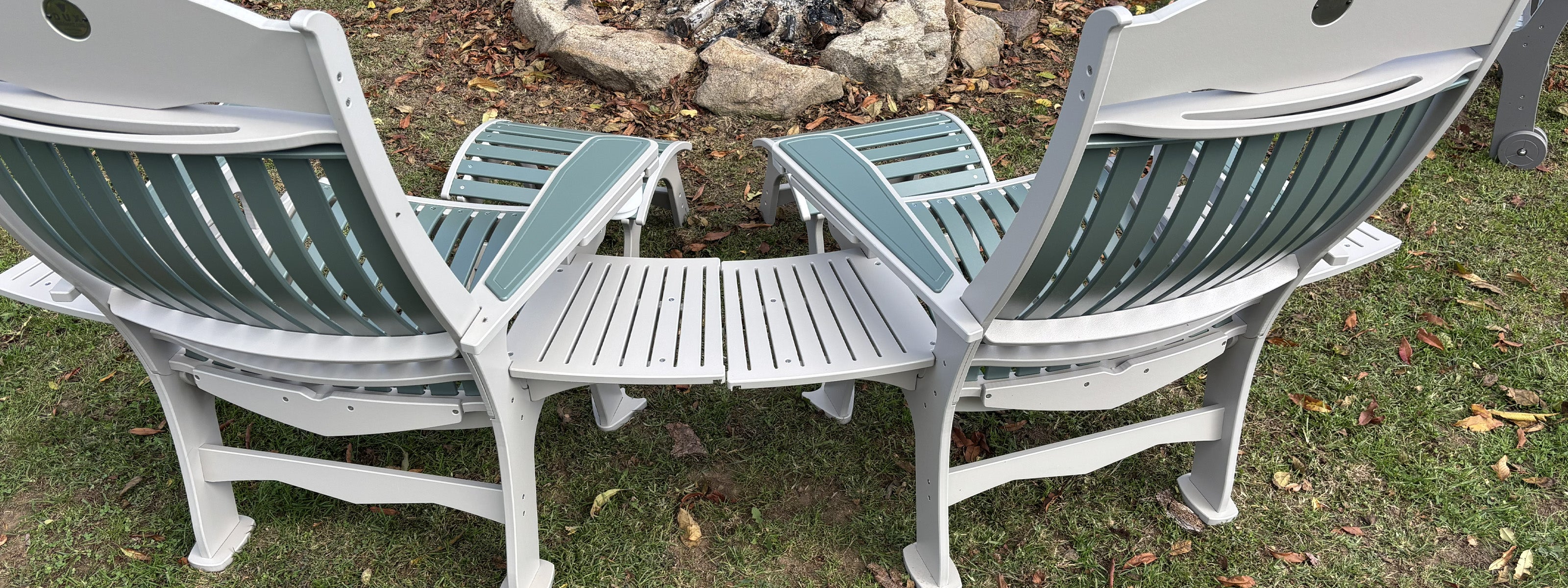 The DUX Chairs we have around our fire pit that include a wine glass holder and cup holder for an added bonus. They are so easy to roll across the ground to put them away when we were done using them around our firepit.