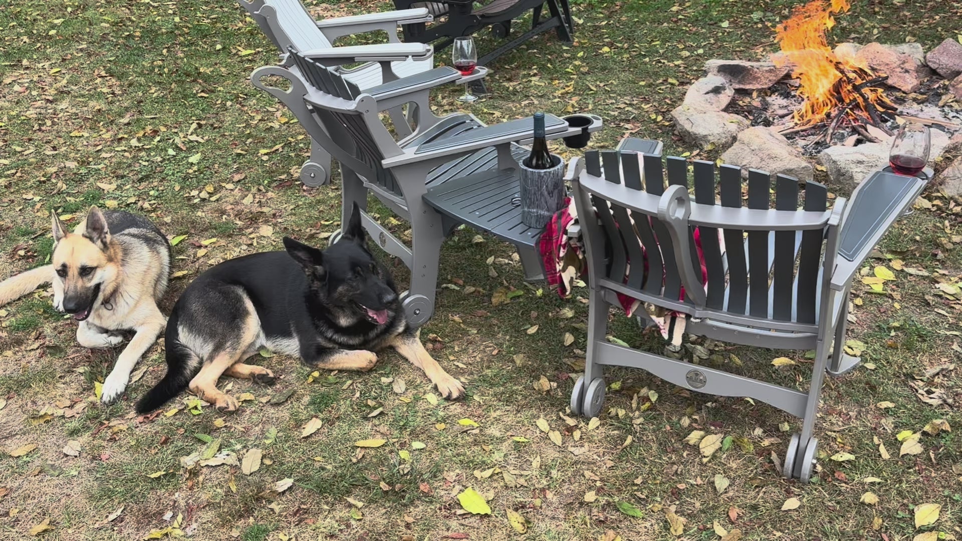 Chairs can be ordered with or without wheels. The wheel version includes a convenient handle, letting the chairs roll easily across patio or grass and making it effortless to reposition for the best view or gather closer to the fire.