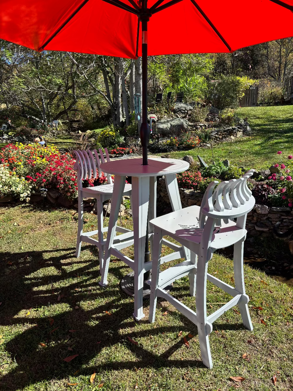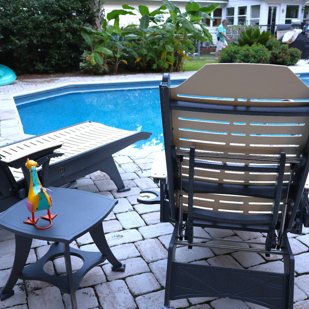 You thought out every detail, making a smaller chair that works perfectly for a shorter person, to the cup and wine holders that move with the chair and the little table that finishes off the set. The construction is solid, and I know the chairs will hold up to the mountain weather. Thank you!